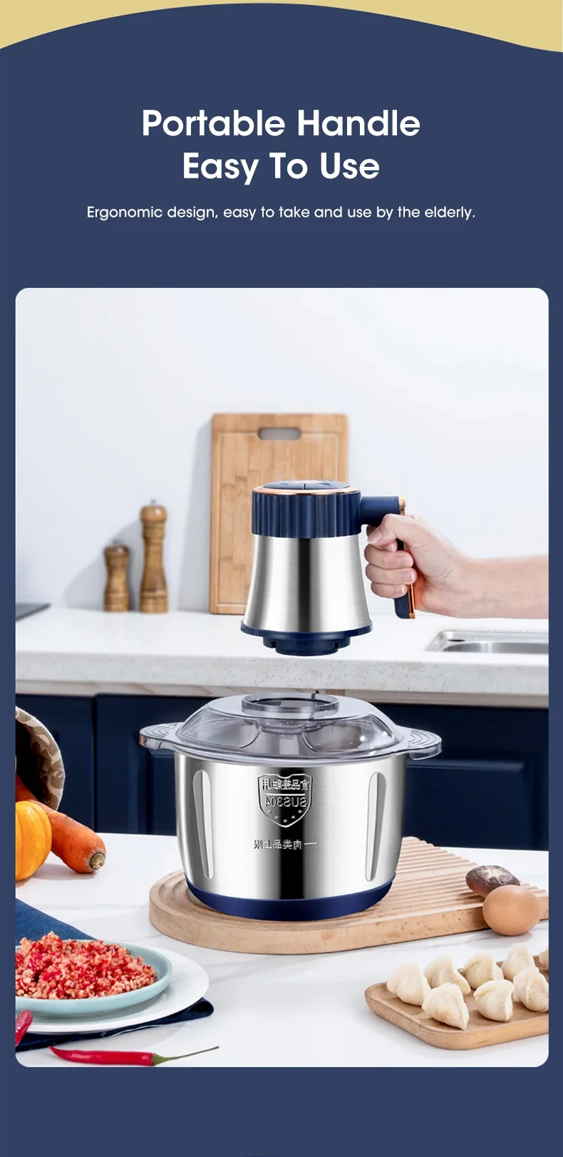 1.Stainless steel compact body design, beautiful and easy to clean and operate.